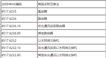 综合上述情况,经研究核对, 2009年HS编码可能涉及网络集线器产品的编码有7个,具体见下表: