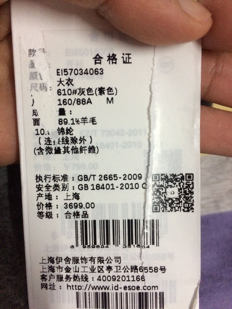 - 欧时力品牌呢子大衣质量问题