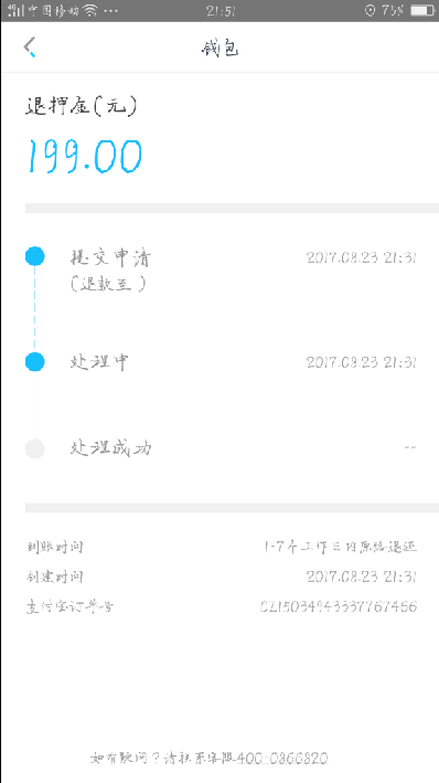 押金超过七天还没退回来客服电话打不通或是忙音...