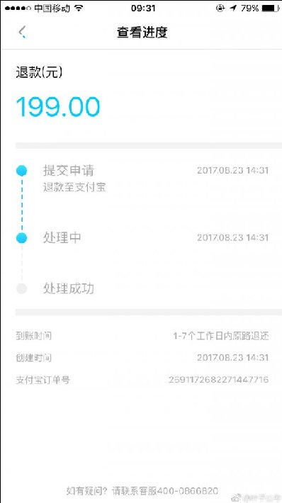 订单号:2017082521001004740206950462 商户订单号:CZ15036555601655582 小鸣单车押金逾期不退,严重影响本人资金流通 ...