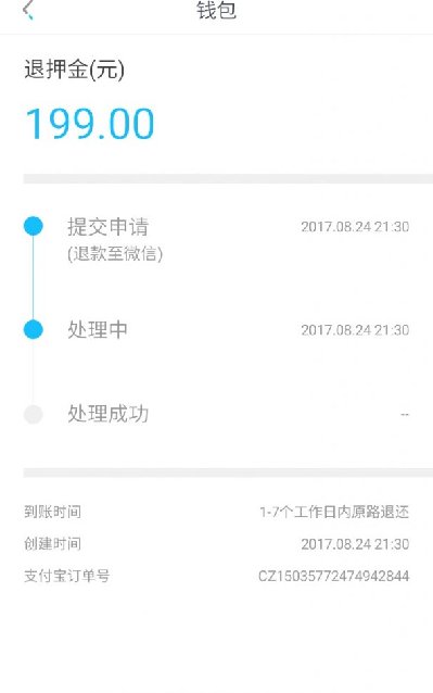 ÎÒ2017Äê8ÔÂ17ÈÕÌá½»µÄѺ½ðÍË»¹ÉêÇ룬½ØÖ¹½ñÌì2017Äê9ÔÂ8ÈÕ»¹Î´Í˻أ¬Èí¼þÉÏһֱд×ÅÉêÇëÍËѺ½ðºó1-7¸ö¹¤×÷ÈÕÔ·Í˻أ¬Ä¿Ç°16¸ö¹¤×÷ÈÕ»¹Î´Í˻أ¬ÉæÏÓÏû·ÑÕ߯ÛÕ©¡£Ï£ÍûÍË»ØÑº½ð199Ôªµ½Ð¡Ãùµ¥³µÕ˺Å13650702736...