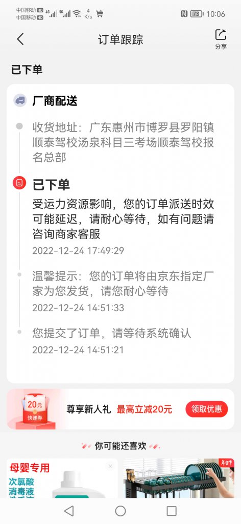 当时购买时京东上显示时速达第二天12月1日送达,结果过了晚上24:00就自动变成了12月2日送达京东有明日达211时速达服务就是因为冲着这个服务1号能送达我才下的单,因为1号晚上着急用,不然我是不会下单的,而且购买完成后我还给我母亲微信留言1号可以送达,他们完全就是欺骗顾...