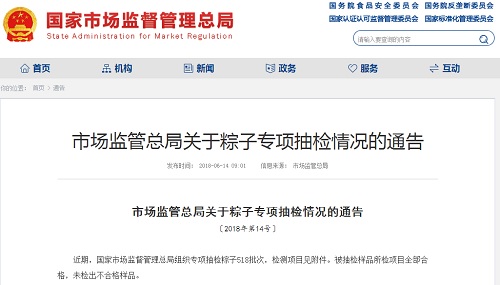 国家市场监督管理总局抽检粽子518批次 样品全合格...
